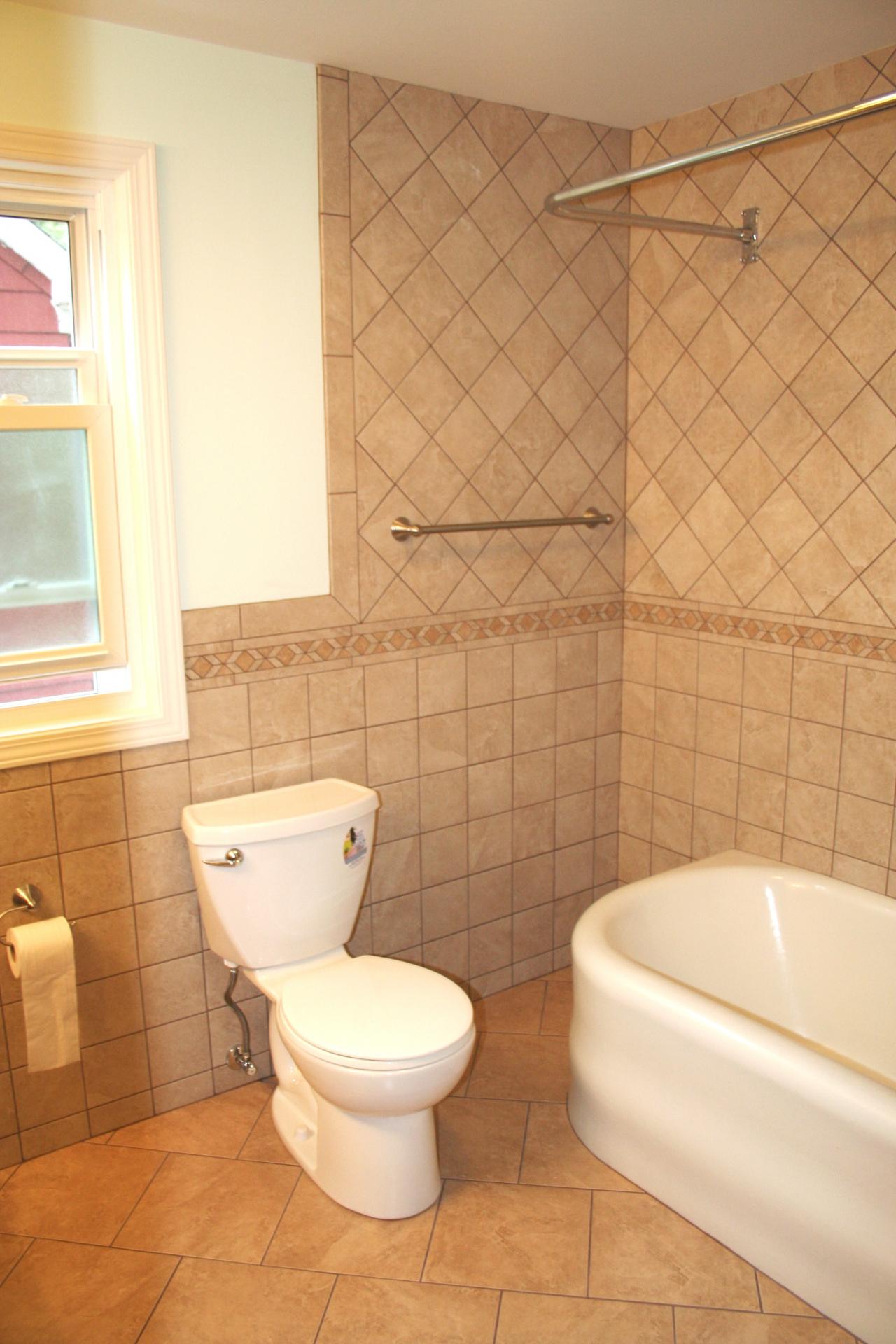Recently renovated bathroom in Lyndhurst, Ohio 44124. Cuyahoga County bathroom designs, ideas and pictures. This renovation from complete tear out to finish was designed by Nest Homes Construction. We delivered a maintenance free, functional yet elegant look to this happy home owner. Call now to discuss your remodeling needs, whether it is a kitchen, bathroom, basement or full house, we can handle it for you.