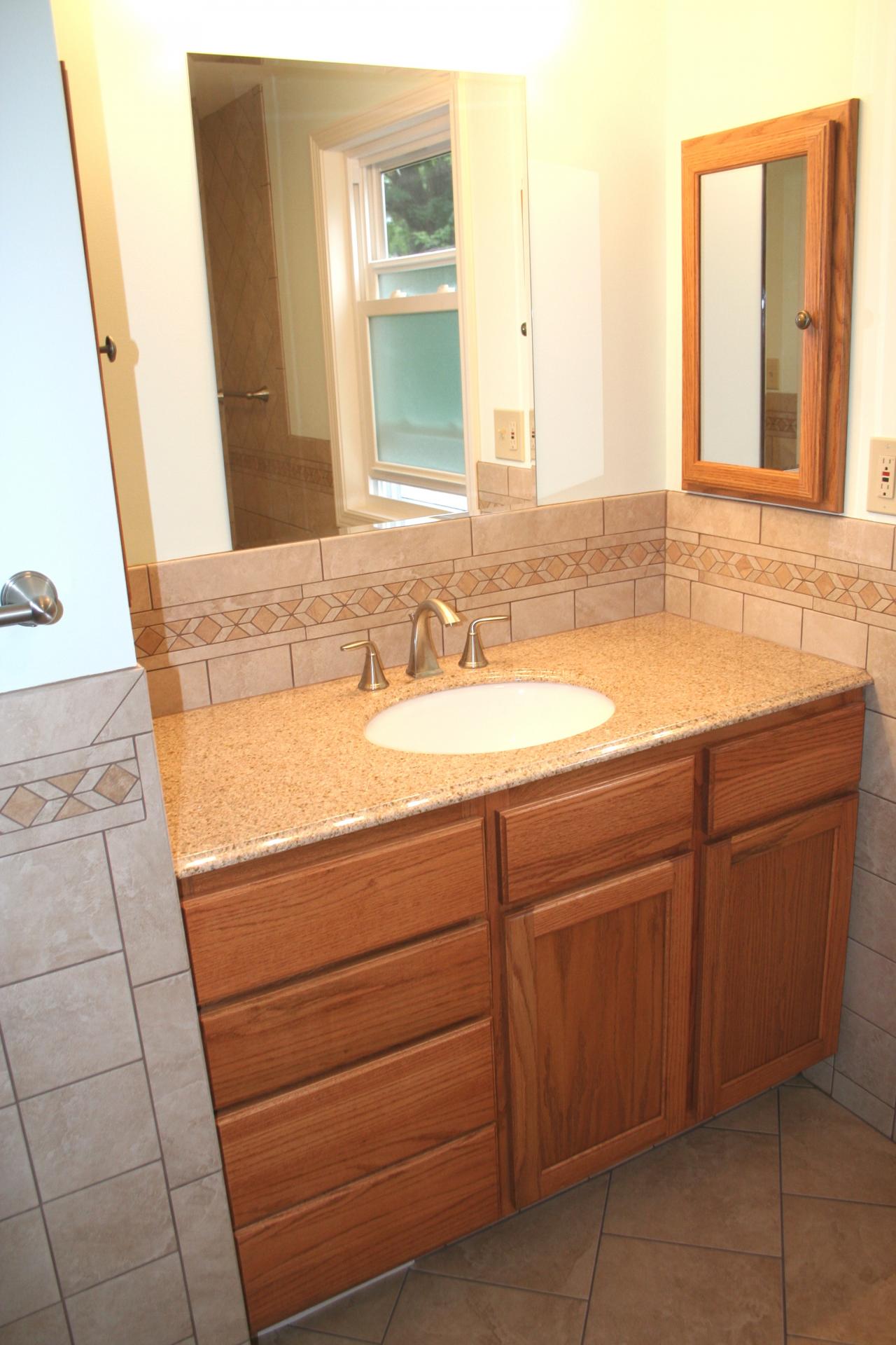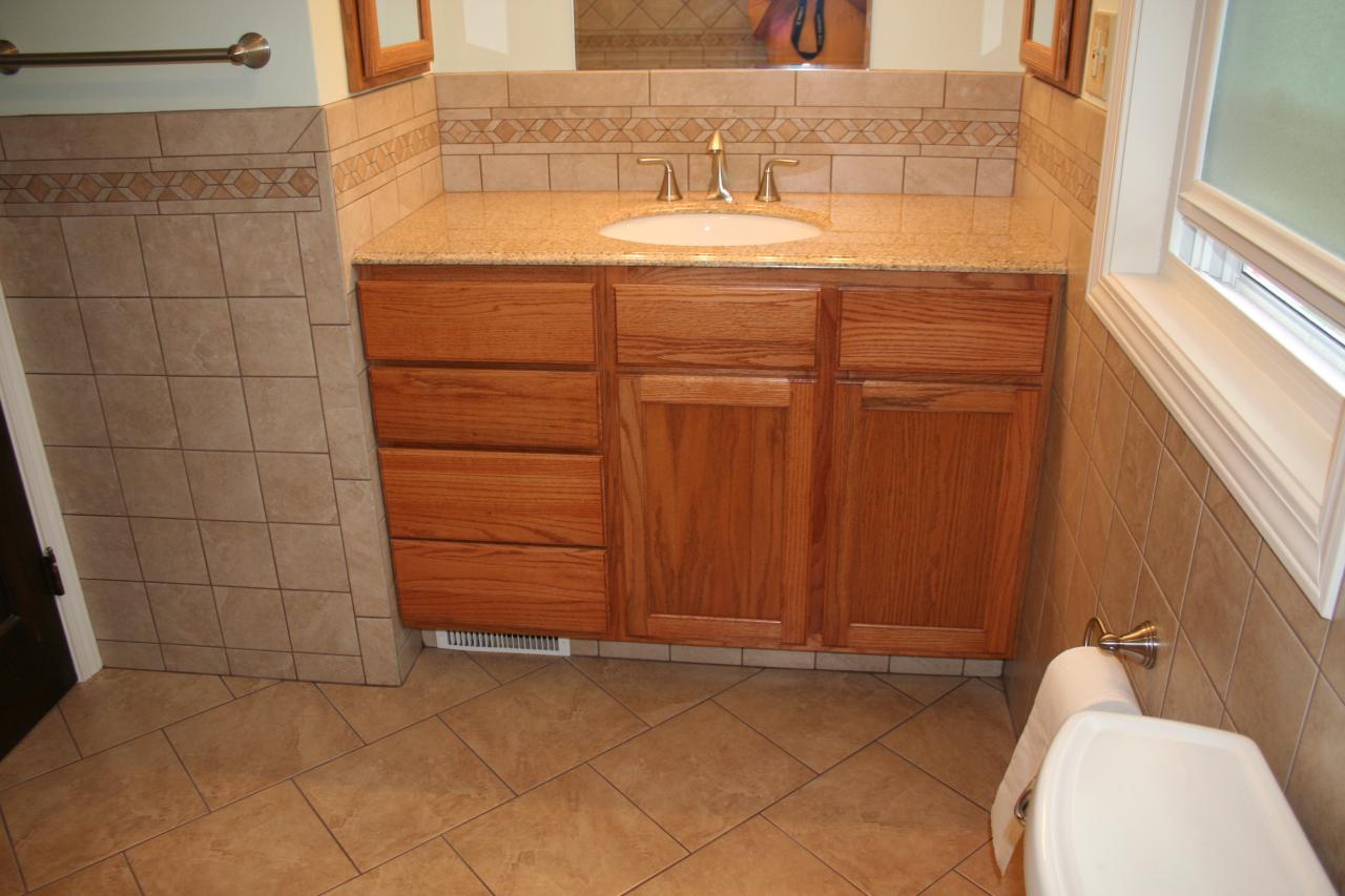 Recently renovated bathroom in Lyndhurst, Ohio 44124. Cuyahoga County bathroom designs, ideas and pictures. This renovation from complete tear out to finish was designed by Nest Homes Construction. We delivered a maintenance free, functional yet elegant look to this happy home owner. Call now to discuss your remodeling needs, whether it is a kitchen, bathroom, basement or full house, we can handle it for you.