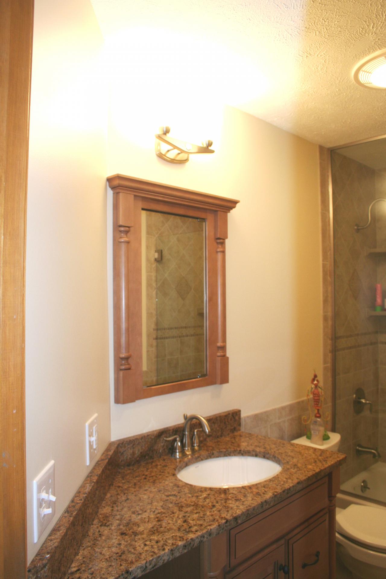 This newly designed and remodeled bathroom in the heart of Lake County, Mentor Ohio 44060 by Nest Homes Construction includes a heated tile floor laid on a diagonal block pattern, feature border tile; insert tiles, diagonal wall pattern above border, stone corner shower shelves, frameless custom shower door, and 17” high toilet, maple cabinet with juparana granite counter top and under mount sink. Brushed nickel finishes on all fixtures, 110CFM exhaust fan with light and night light combinations makes this newly renovated Lake County bathroom a maintenance free, dream come true to a happy Nest Homes Construction customer. So why not call Nest Homes Constructions right now to schedule a consultation for your project needs. We deliver great bathroom ideas, top quality bathroom make-over and design with unparallel quality. We help you with the planning; you don’t have to do it alone.